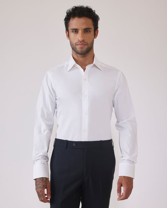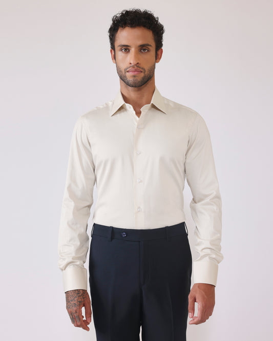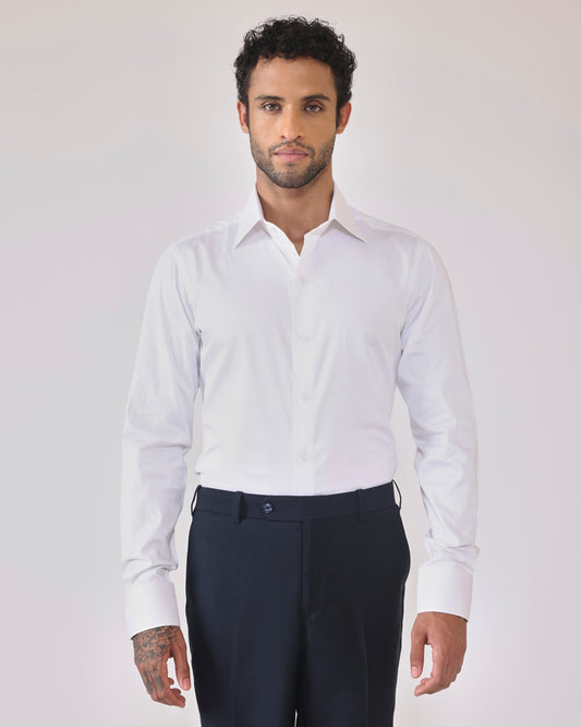Experience timeless elegance with this tailored white shatin Giza cotton shirt. Crafted from luxurious shatin...