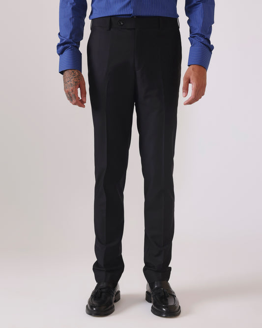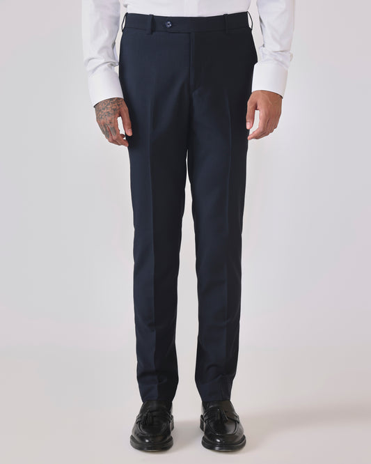 Refined and versatile, these navy blue Terylene Rayon tailored fit pants are a wardrobe essential...