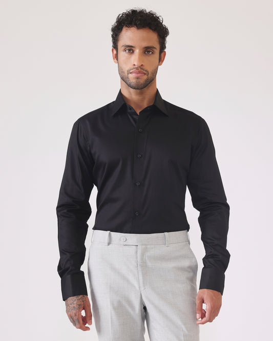 Crafted from luxurious black shatin premium Giza cotton, this tailored shirt brings an air of...