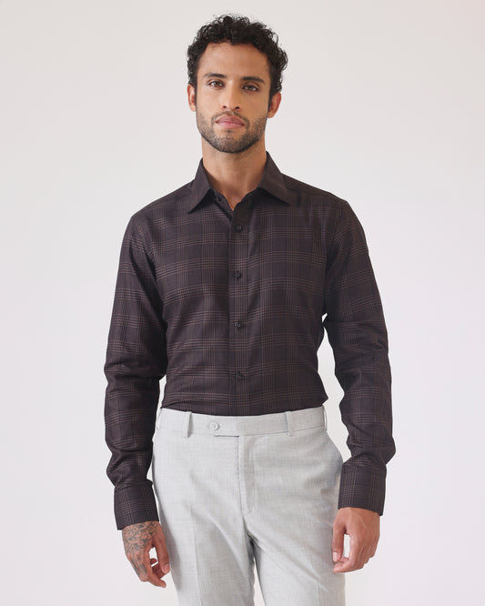 Elevate your formal wardrobe with this tailored brown checks houndstooth shirt, crafted from premium Giza...