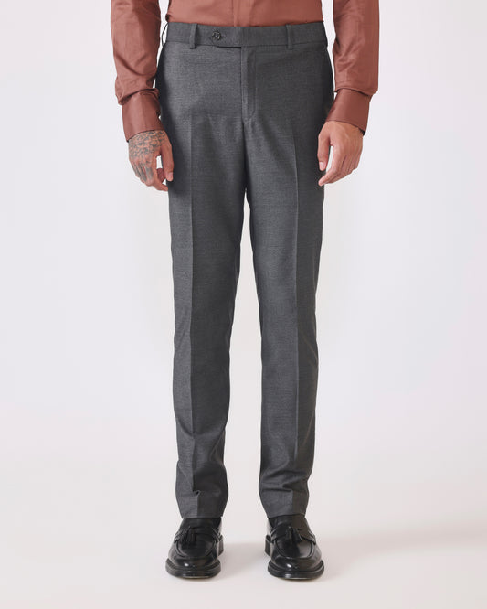 Sophisticated and versatile, these dark gray Terylene Rayon tailored fit pants are perfect for adding...
