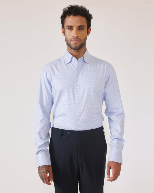 Crafted from luxurious Giza cotton with a premium houndstooth pattern, this tailored shirt combines timeless...