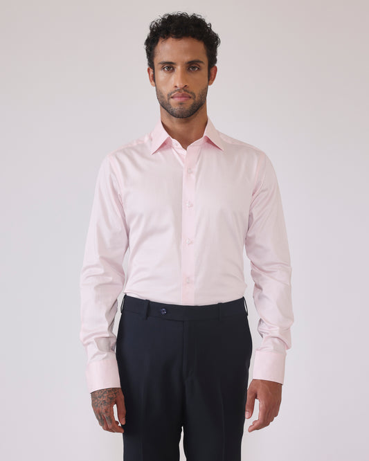 Enhance your formal wardrobe with this elegant pink shatin shirt, crafted from premium Giza cotton....