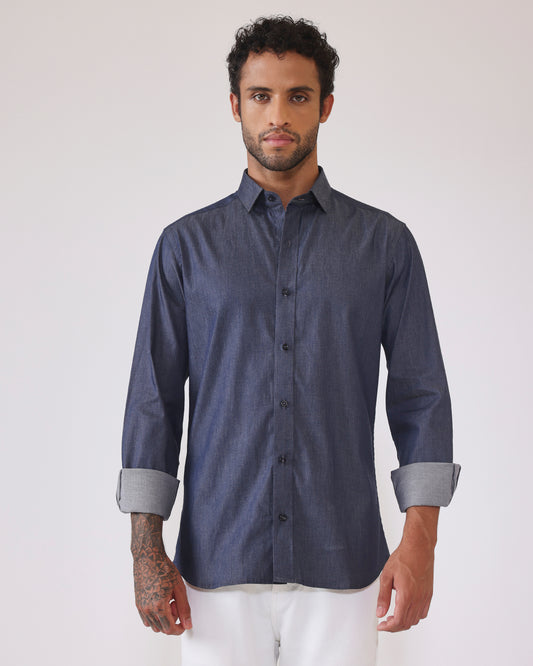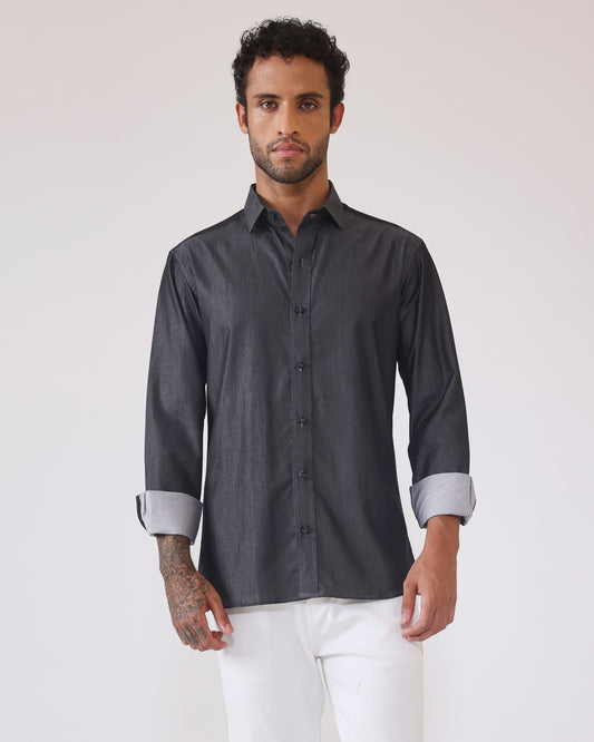 Elevate your casual wardrobe with this stylish denim textured Giza cotton shirt. Crafted from premium...