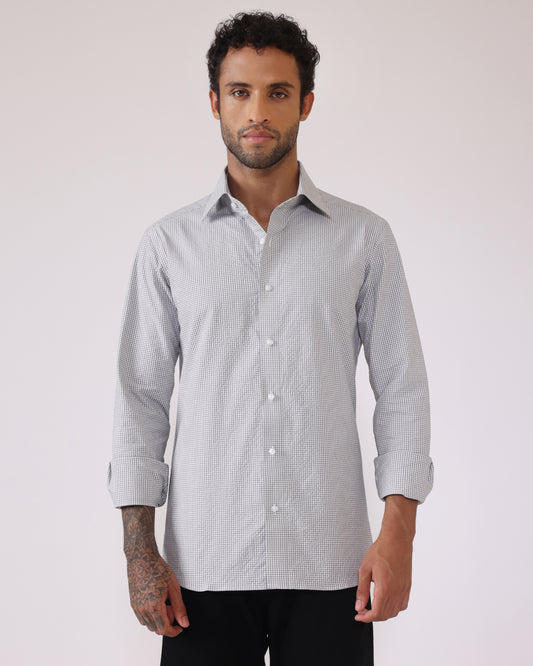 Elevate your formal wardrobe with this luxurious light gray shatin shirt, crafted from premium Giza...