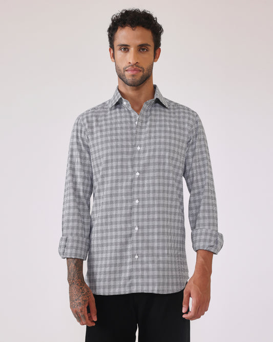 Step up your casual or semi-formal wardrobe with this stylish gray checks seersucker cotton shirt....