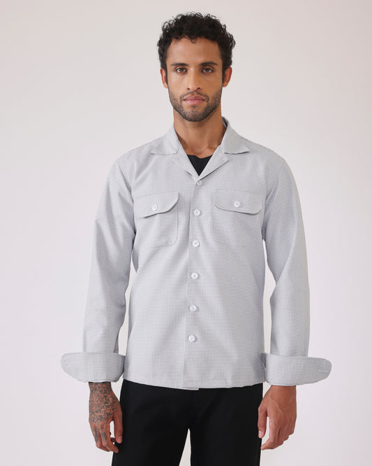 Elevate your casual wardrobe with this stylish light gray houndstooth jacket. Crafted from premium fabric,...