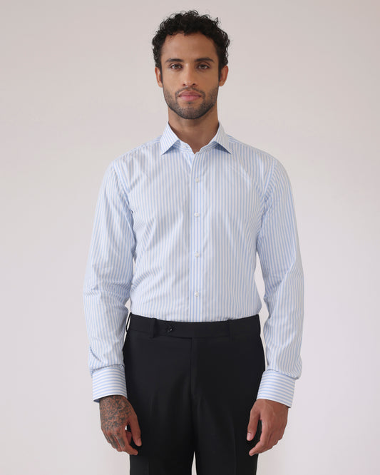 Refined and effortlessly stylish, this muted light blue striped shirt is crafted from premium Giza...