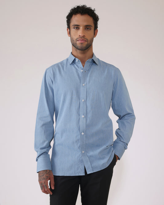 Upgrade your casual wardrobe with this versatile light blue denim shirt. Crafted from high-quality, soft...