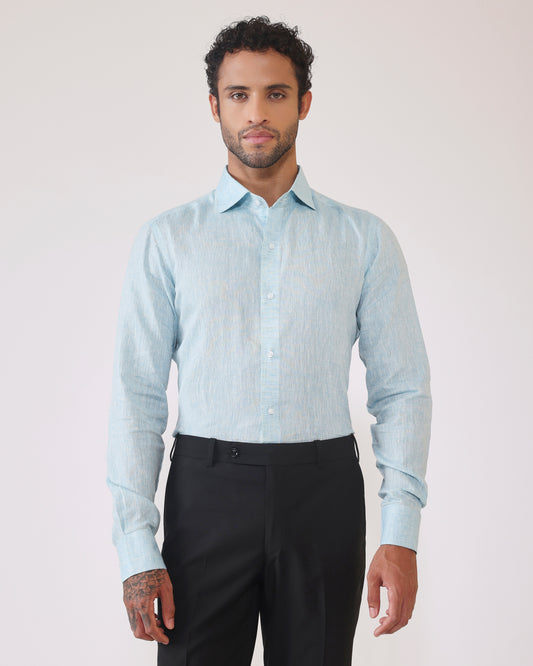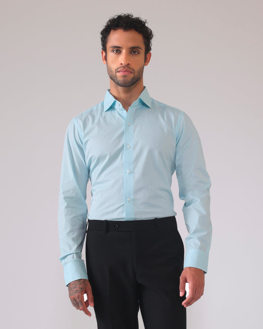 Upgrade your formal wardrobe with this tailored light blue premium Giza cotton shirt. Made from...