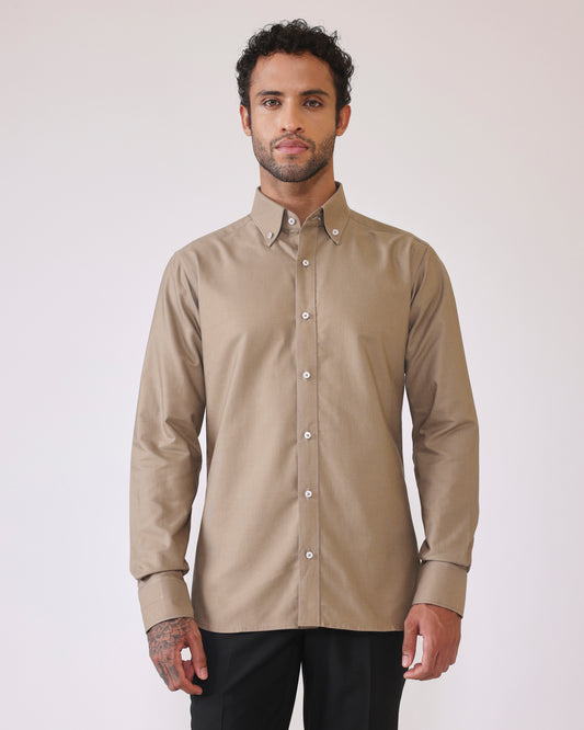 Enhance your professional wardrobe with this refined light brown shatin Giza cotton shirt. Crafted from...