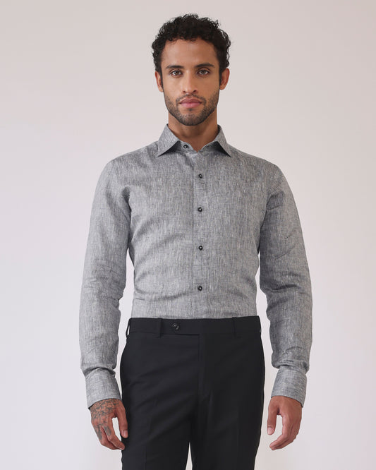 Discover the perfect blend of style and comfort with this tailored gray pure linen shirt....