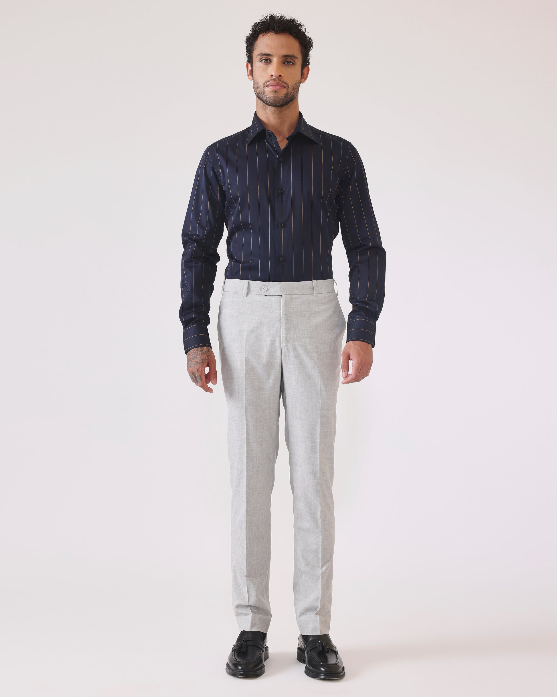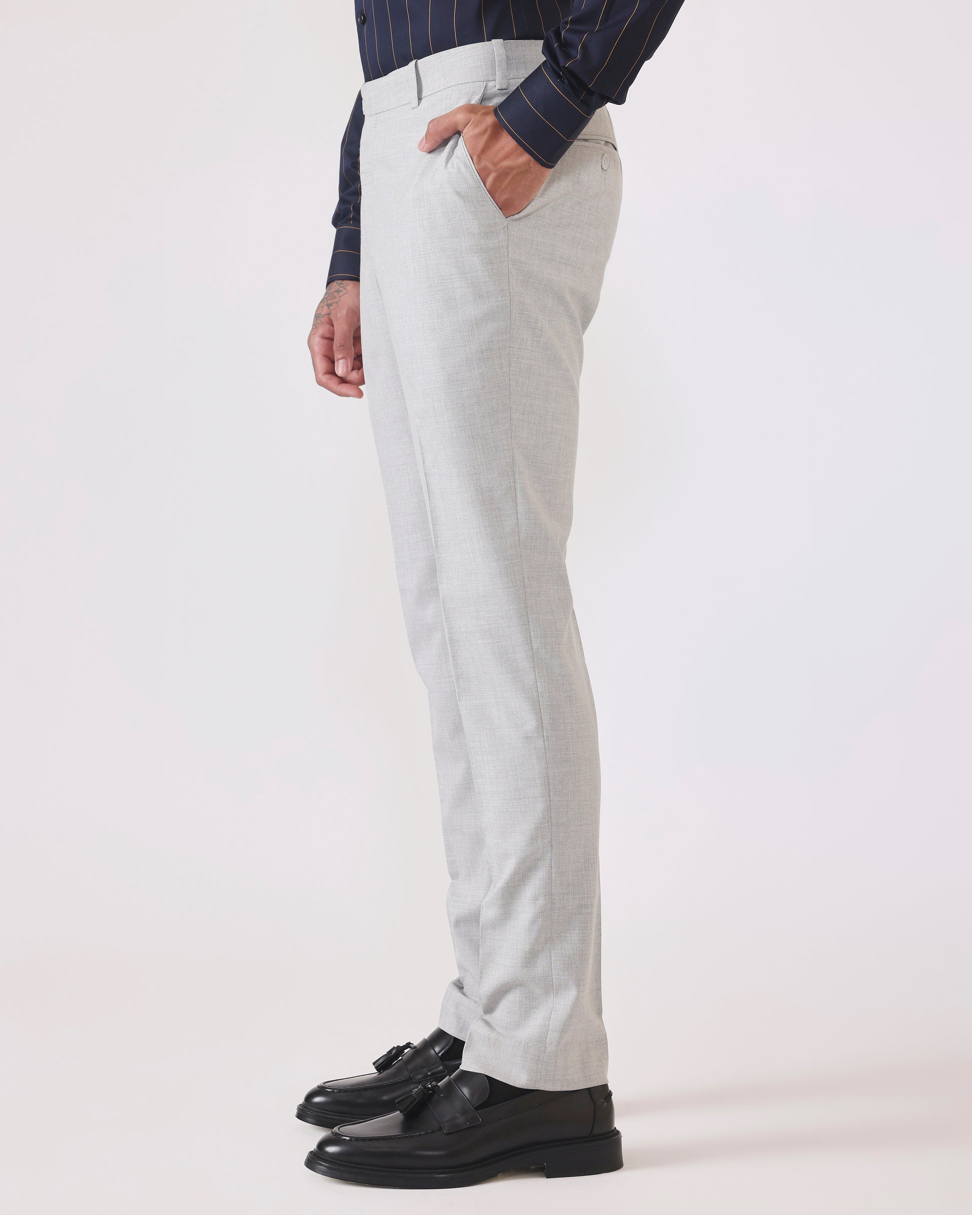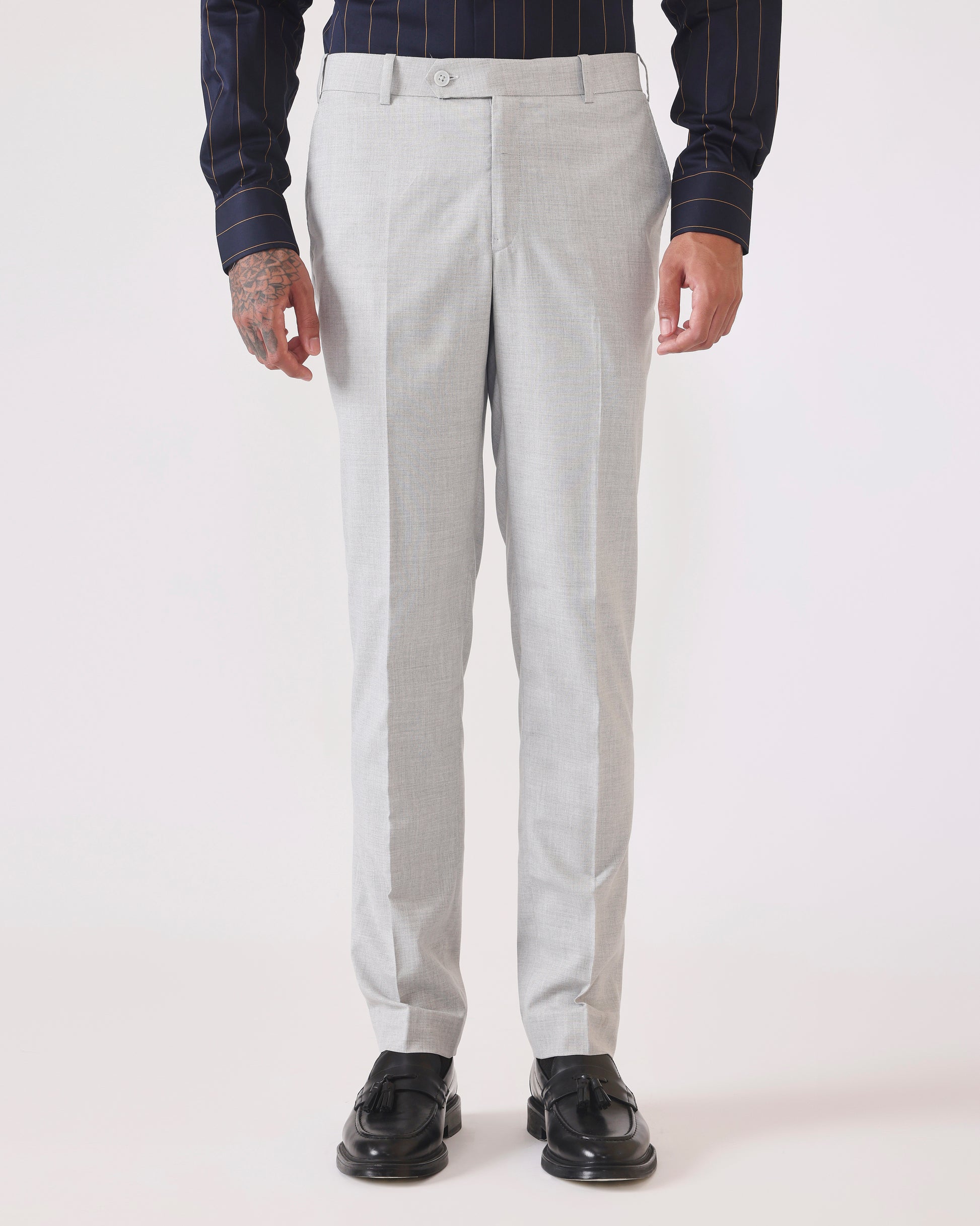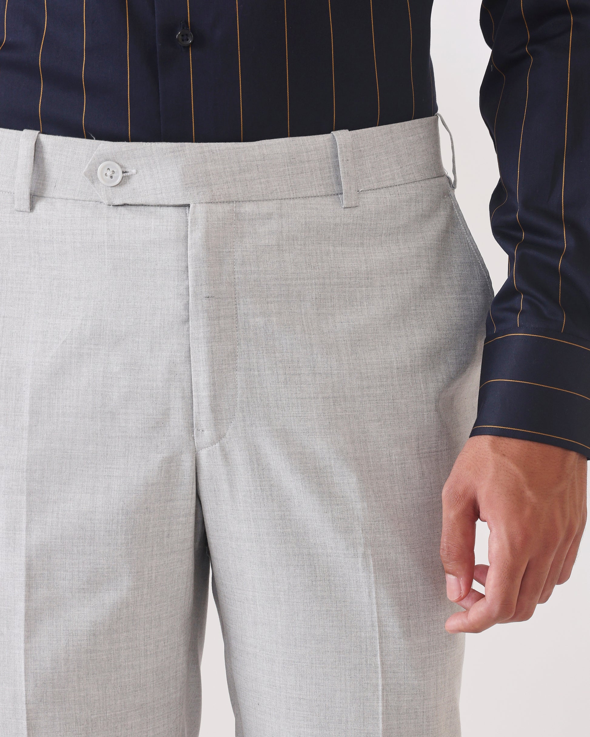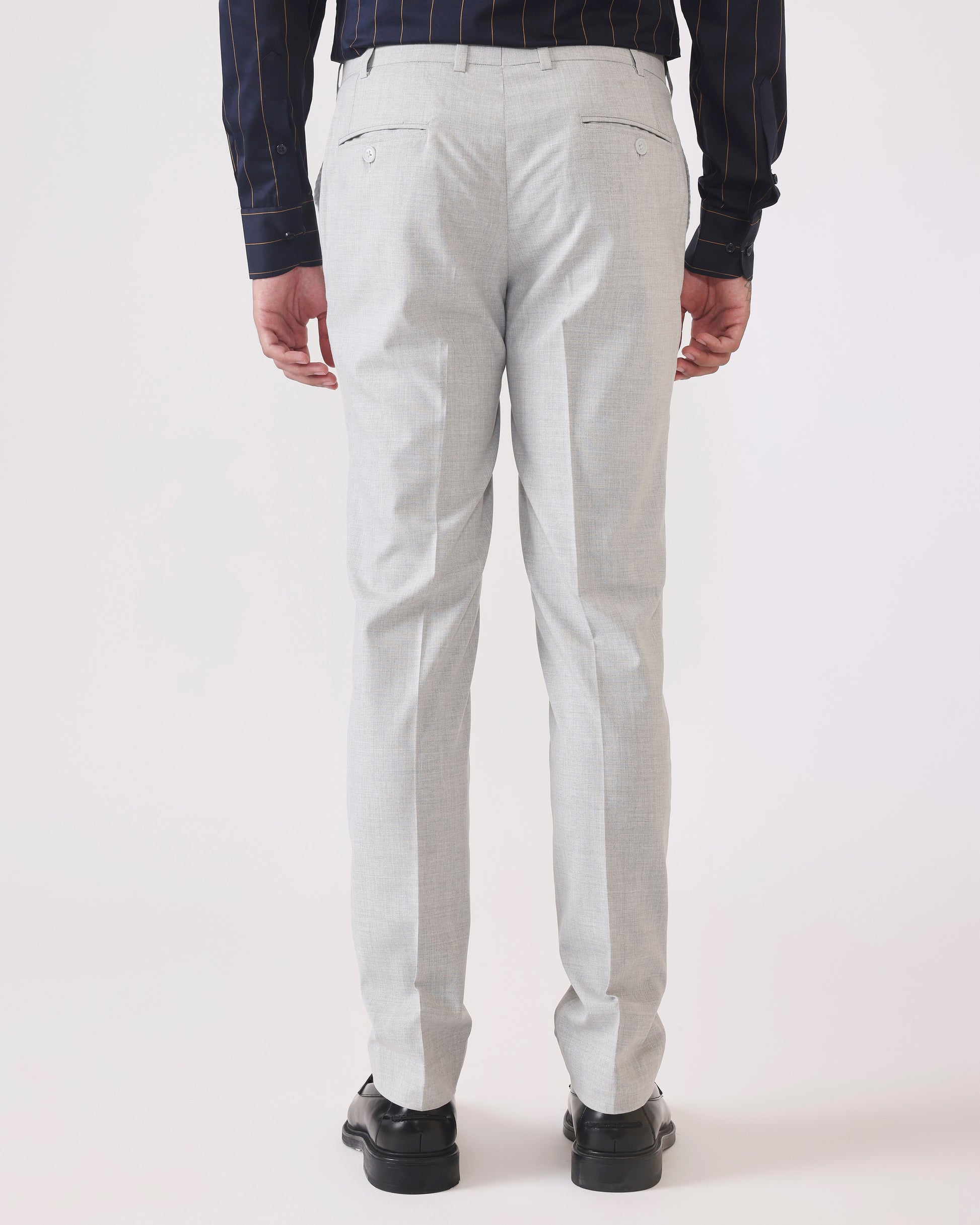 Upgrade your formal wardrobe with these light gray Terylene Rayon tailored fit pants, designed for both style and comfort. The Terylene Rayon fabric offers a smooth, making these pants perfect for long days at the office or formal events. Tailored to fit your unique body type, they provide a sharp, modern silhouette while ensuring comfort. The light gray color adds a refreshing, contemporary touch to your professional attire.